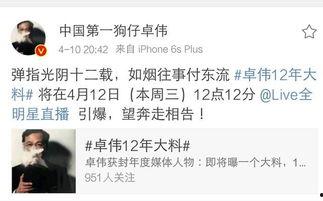 最近娱乐圈可是热闹非凡呢!这不,著名狗仔卓伟又来劲了,他这次可是爆出了一个大瓜,让整个娱乐圈都炸开了锅。咱们就一起来聊聊这个话题,看看卓伟这次又挖出了哪些猛料吧!